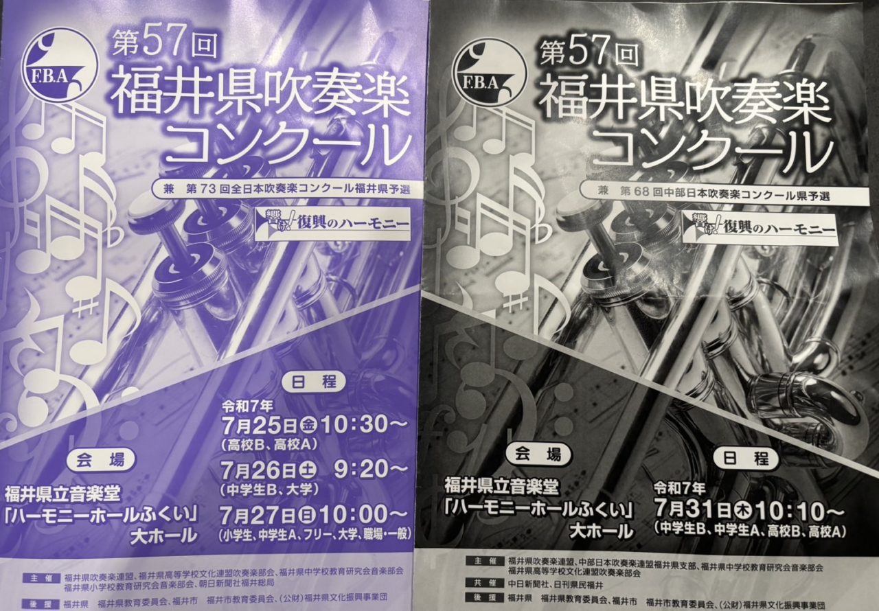 7月27日には全日本吹奏楽コンクール福井県予選中学生A部門に出場し、課題曲『祝い唄と踊り唄による幻想曲』、自由曲『吹奏楽のための神話~天の岩屋戸の物語による~』を演奏。見事金賞を受賞しました。