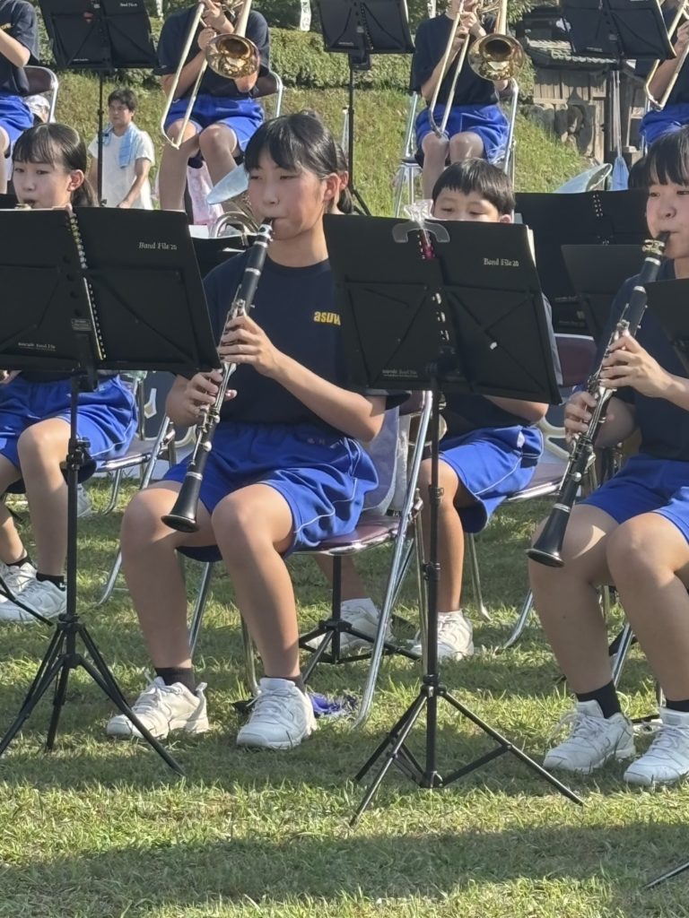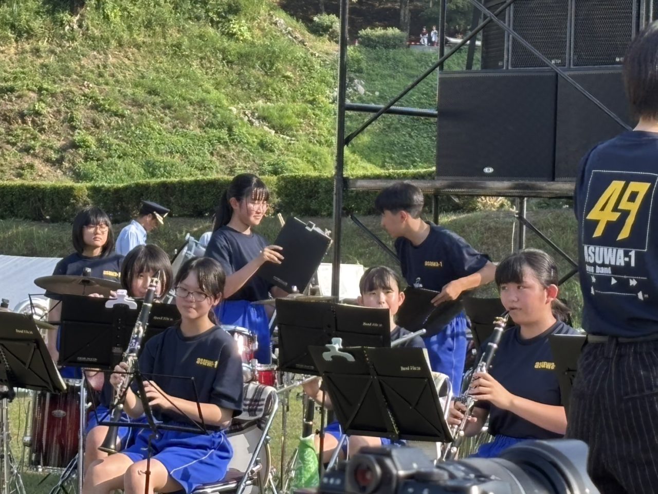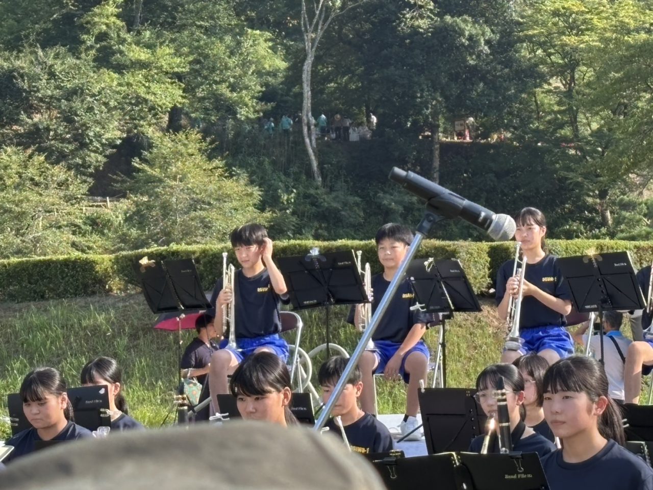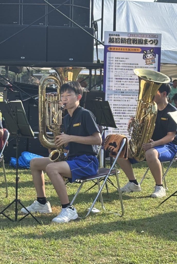 歴史ある朝倉氏遺跡に響きわたる演奏は会場を大いに盛り上げ、観客の皆様から大きな拍手をいただきました。炎天下での演奏に臨む姿には、日頃の努力が感じられ保護者としても頼もしく感じられました。