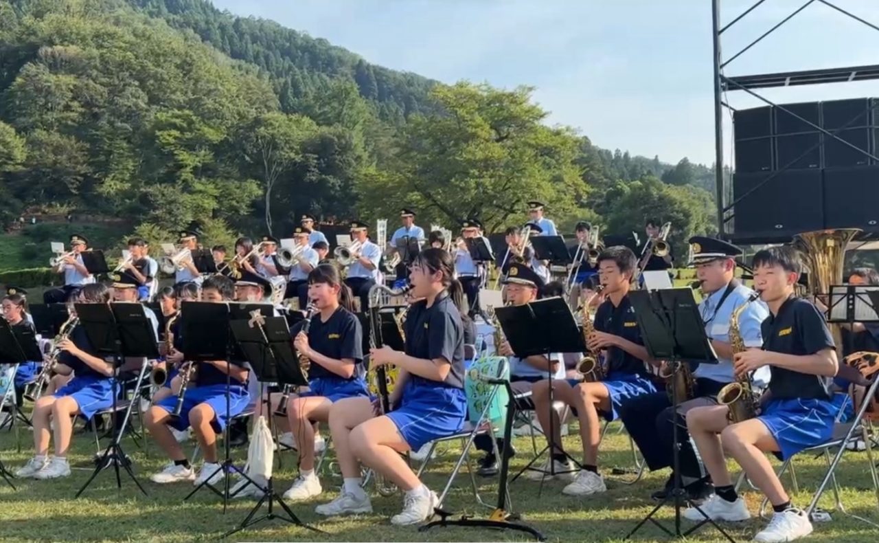 炎天下に響く力強い音色 ― 吹奏楽部、万灯夜オープニング出演