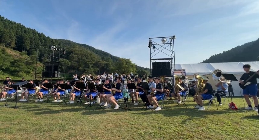 最高気温37度という厳しい暑さの中、生徒たちはアンコールを含め5曲を堂々と演奏し、さらに福井市消防音楽隊の皆様との共演も実現しました。