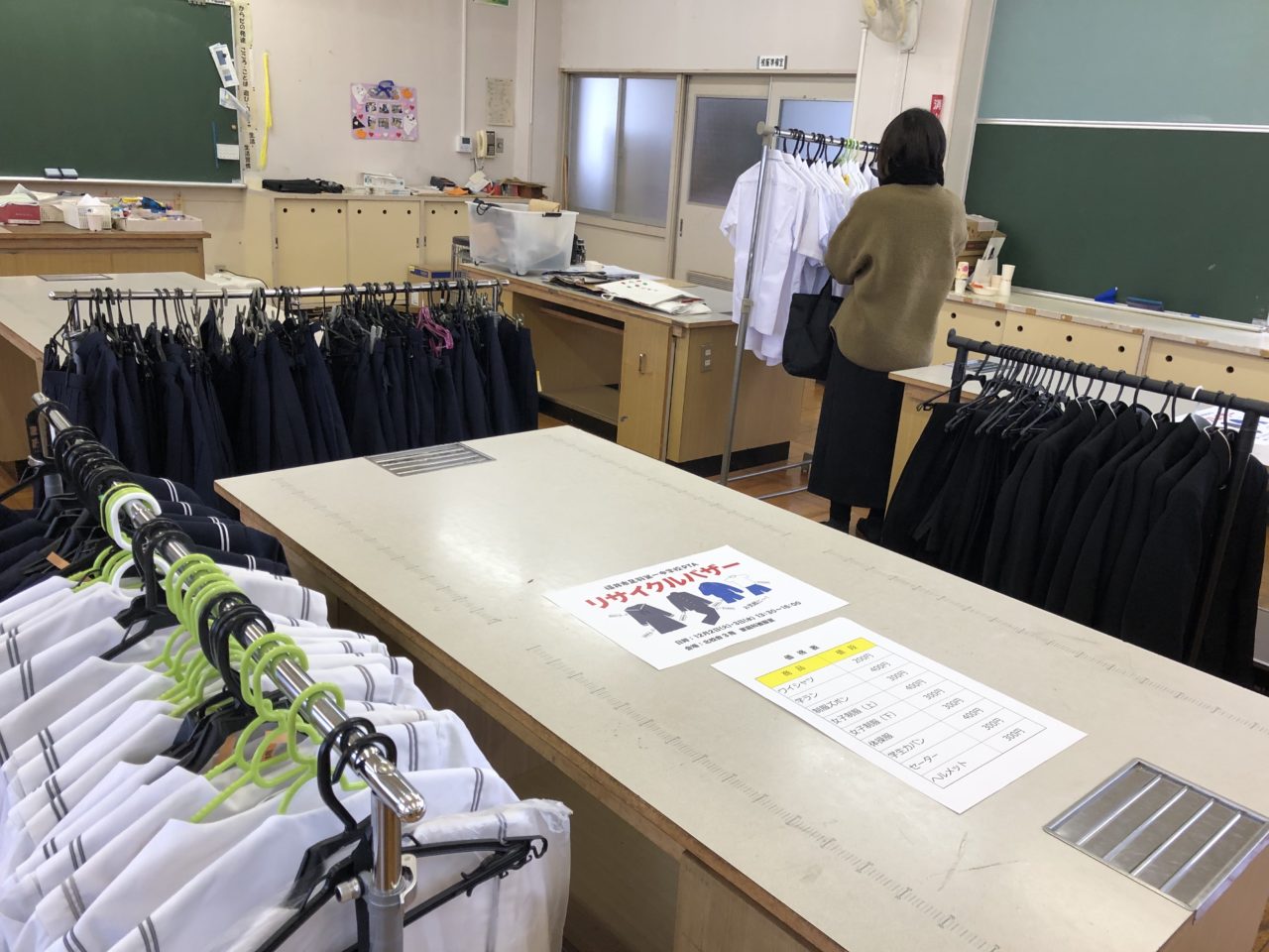 12月2日(火)・3日(水)の2日間、保護者懇談会の開催に合わせて制服・体操服等のリサイクルバザーが開催されました。皆様のご協力で8月の資源回収の際に多くのリサイクル品が回収され、今年度も開催することが出来ました。