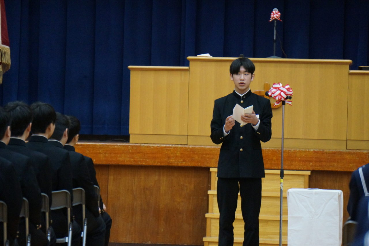 在校生代表の笠原賢人さんによる送辞では、先輩たちへの感謝と憧れの思いが伝えられました。