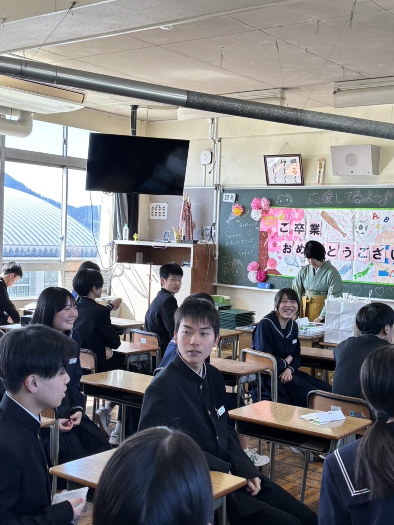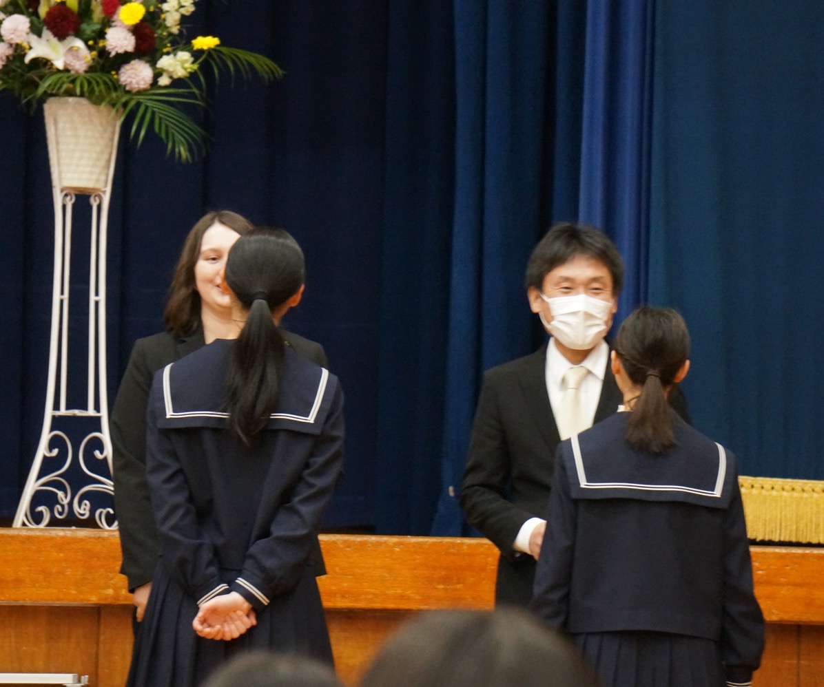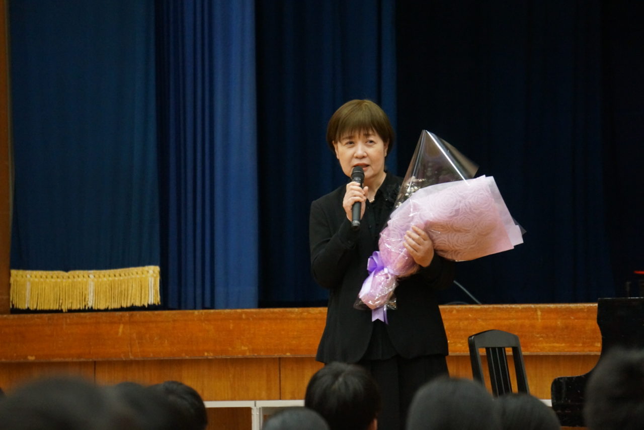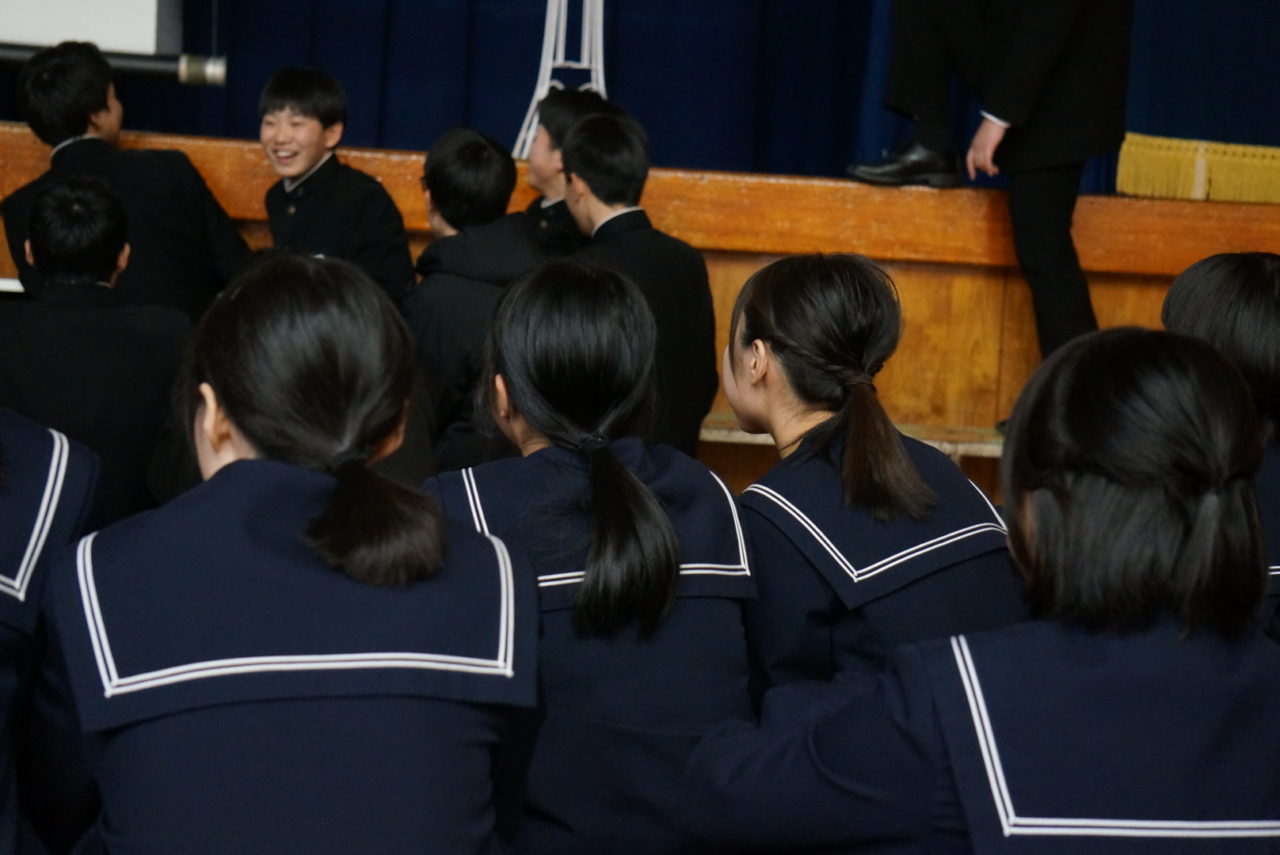 最後の学年集会では、お世話になった先生方へ感謝の言葉が贈られました。
