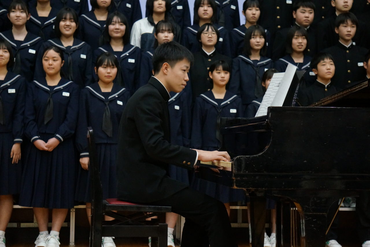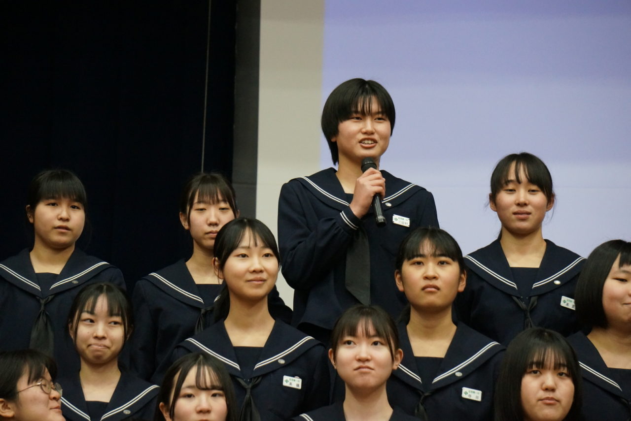それに応えるように、卒業生代表 山本舜利さんが答辞を述べ、仲間との思い出や先生方への感謝、そして未来への決意を語りました。いよいよ全体合唱が終わると式は終了です。