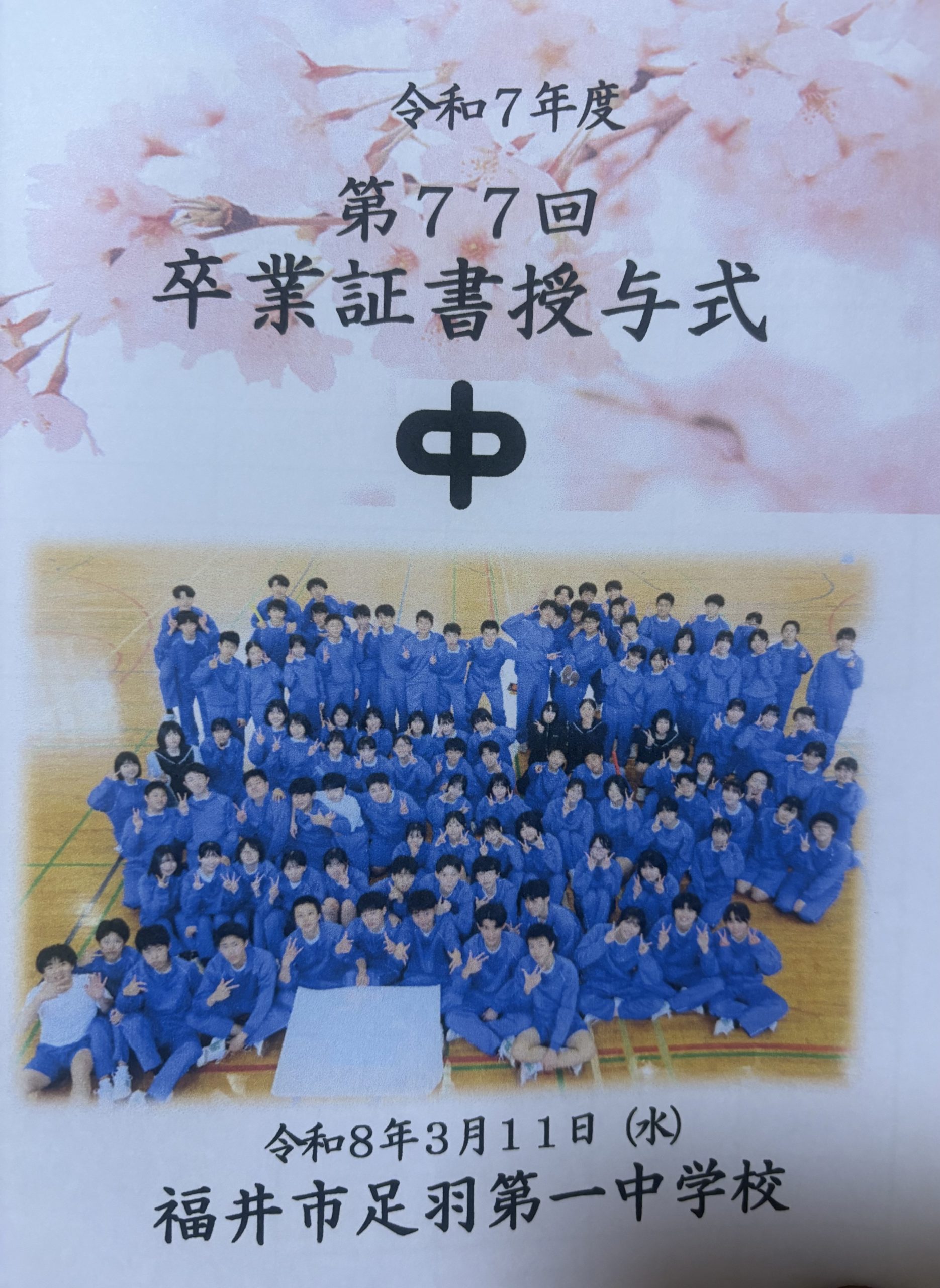 3月11日(水) 晴れ渡る青空の下、足羽第一中学校 第77回卒業証書授与式が執り行われました。